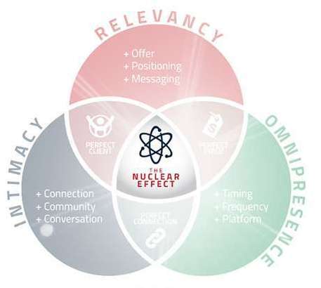 Relevancy, Omnipresence, and Intimacy are the core concepts. Watch the video below to get started learning how they work together to create "The Nuclear Effect" in your business.....