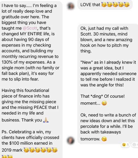 You create deeper, more meaningful Relationships. 1-on-1 Relationships are deeper than those with your audience members. And when you have a growing business and audience behind you, you get access to better, more profitable partnerships. You find yourself getting into media outlets and leveraging PR. You have a network strong enough to build a powerful Mastermind, and you get access to new, exciting opportunities.